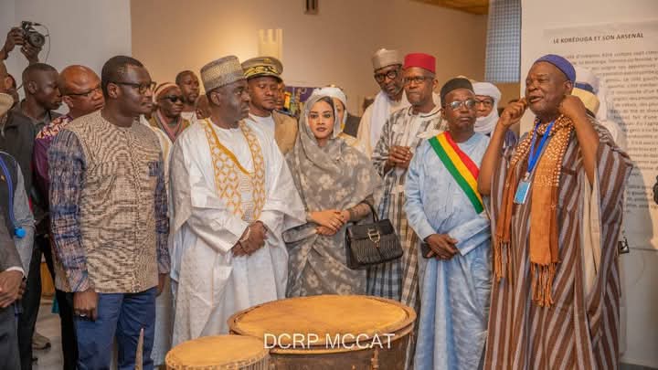 En marge de la célébration de la 21e édition du festival du Niger Ségou art, la délégation burkinabè avec à sa tête le Ministre de la Communication, de la Culture, des Arts et du Tourisme, Pingdwendé Gilbert OUEDRAOGO a pris part aux côtés de ses pairs du Mali et du Niger à l’inauguration du Musée Kôrê des Arts et de l’Artisanat (MKAA) à Ségou, le 05 février 2025. Logé au sein du Centre culturel Kôrè, ce Musée donne à voir à ses visiteurs la chaîne ancestrale de transformation du coton, les grandes figures emblématiques de l’histoire du Mali, Soundjata Keïta, Kankan Moussa, Mamari Biton Coulibaly et Da Monzon Diarra entre autres et de nombreux instruments de musique. En plus des œuvres d’artistes provenant de l’AES, le musée Kôrè expose également des œuvres provenant d’autres pays africains comme le Gabon et le Cameroun. Cette exposition de diverses cultures est la preuve à entendre le ministre Pingdwendé Gilbert Ouedraogo de la volonté manifeste de la vision panafricaine de l’Alliance des Etats du Sahel (AES). Ceci traduit selon lui sa volonté de s’ouvrir au continent et au reste du monde. « Notre ambition n’est pas de nous renfermer sur nous-mêmes, mais de partager les idéaux promus par nos dirigeants », a soutenu Gilbert OUEDRAOGO. Ce musée dispose également d’un espace multimédia, qui illustre la coexistence harmonieuse entre tradition et modernité mettant en exergue les différentes transformations du coton. « Une occasion de souligner qu’avec nos connaissances et notre riche patrimoine, nous pouvons assurer la transformation de nos ressources et nous suffire à nous-mêmes, particulièrement dans le domaine du textile », a appuyé le Ministre Pingdwendé.