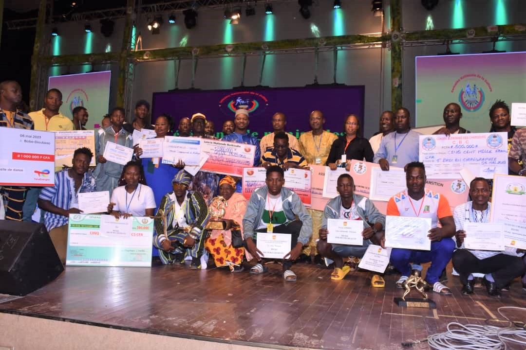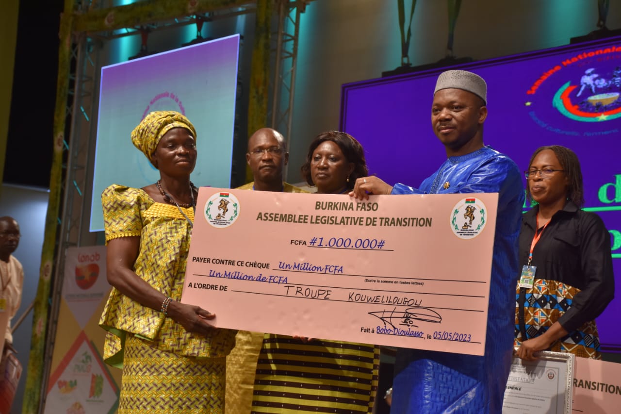 A 24h de la clôture de la 20e édition de la semaine nationale de la culture (SNC), les lauréats des différents prix spéciaux ont été récompensés. D’une valeur de19.700.000 F CFA, c’est au total 37 prix spéciaux qui ont été décernés à des artistes et ensembles artistiques suivant les différentes disciplines du Grand Prix national des Arts et des Lettres (GPNAL). Cette cérémonie de récompense s’est tenue à la maison de la culture Anselme Titianma Sanon, le vendredi 5 mai 2023. Elle était placée sous la présidence président de l’Assemblée législative de Transition (ALT), Dr Ousmane Bougouma. Ce dernier était assisté du ministre de Communication, de la Culture, des Arts, et du Tourisme, Rimtalba Jean Emmanuel Ouédraogo. Ce fut l’occasion pour le président de ladite cérémonie de saluer la résilience et la détermination des organisateurs, des populations, des artistes et des Forces de défense et de sécurité pour la réussite de cette biennale culturelle. Aussi, son institution a offert 3 prix dans les catégories, slam, chœur populaire et de la vedette de la chanson traditionnelle. Seule troupe de la diaspora, la troupe Liwaga Naaba kango d’Attécoubé (Côte d’Ivoire), qui pour sa première participation dans la compétition repart avec le prix spécial en danse traditionnelle décerné par la nationale des jeux du hasard, la LONAB d’un montant de 2.000.000 FCFA. « Nous avions l’habitude de venir à la SNC en tant que troupe invitée, mais à cette 20ième édition nous sommes à notre première participation en tant que compétiteurs dans la catégorie danse traditionnelle et Dieu merci nous avions eu un prix spécial, c’est une fierté pour toute la diaspora », s’est exclamé le fondateur de la troupe, Amadou Ouedraogo. Ce fut l’occasion pour le ministre de la Communication, de la Culture, des Arts et du Tourisme, Rimtalba Jean Emanuel Ouédraogo, de remercier différents partenaires qui ont financé ces prix spéciaux. Pour lui, au-delà de cesprix d’une valeur considérable qui contribue à la saine émulation des acteurs culturels de façon en particulier, sont l’expression d’une inestimable à à promouvoir notre patrimoine commun.