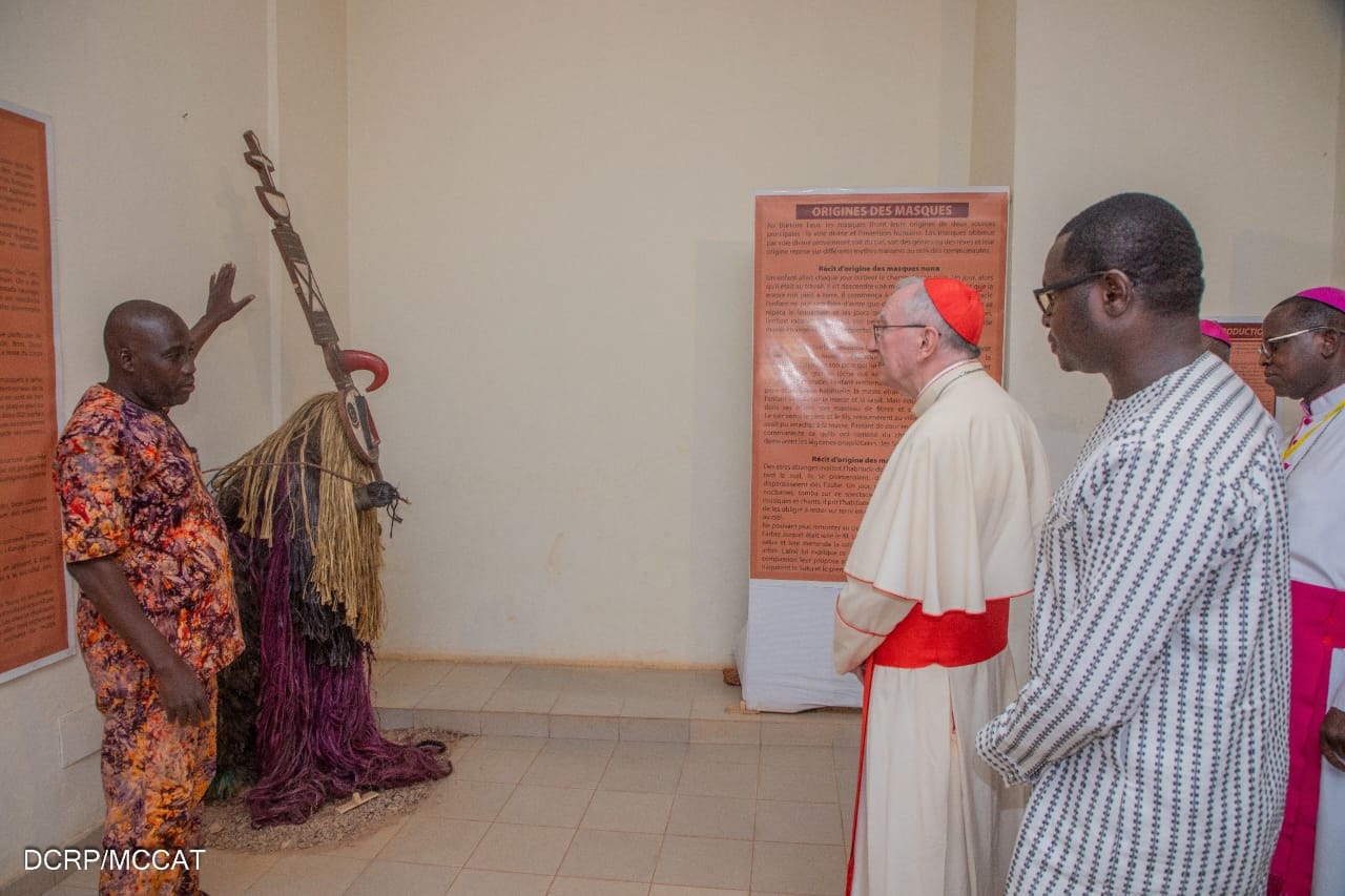 En séjour au Pays des Hommes Intègres dans le cadre des 125 ans d’Evangélisation au Burkina, le Cardinal Pietro PAROLIN, Secrétaire d’Etat de l’Etat du Vatican, a visité le Musée National du Burkina Faso en compagnie d’une forte délégation d’évêques du Burkina, du ministre de la Communication, de la Culture, des Arts et du Tourisme, Pingdwendé Gilbert Oeudraogo et du directeur général du Musée National, Sabari Christian DAO. La visite touristique du cardinal a concerné les Habitats du Faso et des deux salles d’exposition. A l’issue de la visite découverte, le Secrétaire d’Etat du Souverain pontife a laissé ce message dans le livre d’or du Musée National du Burkina Faso. « Reconnaissant pour la visite au Musée National du Burkina Faso, je souhaite que l’héritage culturel qui est ici conservé et valorisé puisse stimuler les habitants de ce pays et surtout les nouvelles générations à conserver les valeurs authentiques de leur passé pour construire solidement leur futur. Avec la bénédiction du Pape François et l’assurance de ma prière ».